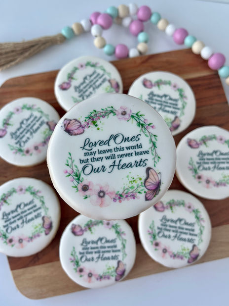 Our cookies and icing are home made from scratch using real butter and extracts. We use local products when available to support our nearby local communities. Each cookie is individually sealed for optimal freshness. Your completed order is beautifully packaged in a bakery box and adorned with a bow. Prices are for, 2.8" -4"cookies per dozen.